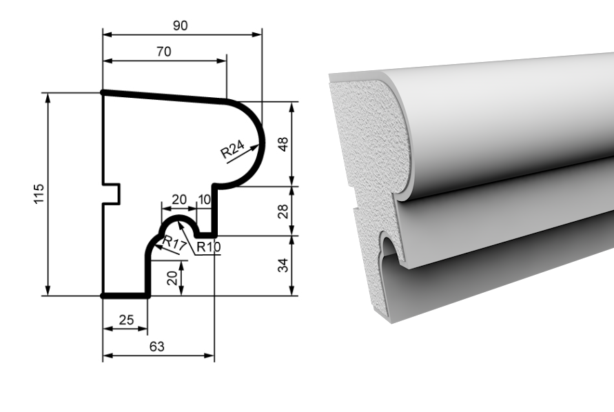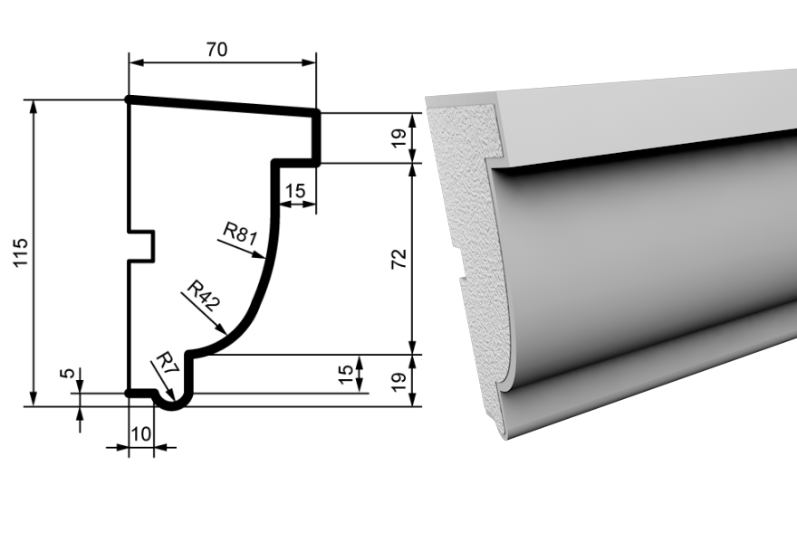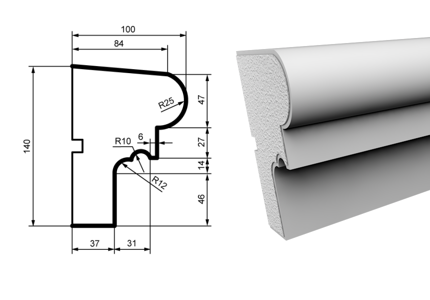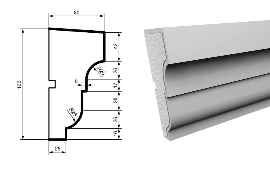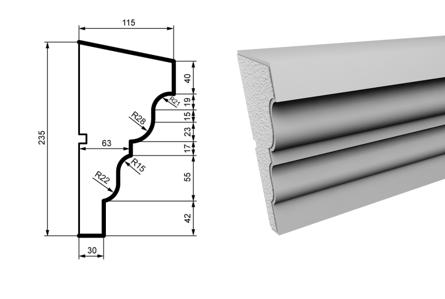 The facade elements are created from high-quality polystyrene foam and coated with a protective acrylic layer containing marble chips. This ensures the decorations are exceptionally durable and resistant to external weather conditions. Their lightweight nature allows for easy installation on various surfaces. In addition to their aesthetic appeal, these facade elements provide excellent insulation and can enhance the energy efficiency of your building. Their easy installation and versatile design make them a perfect choice for both new constructions and renovations. Our range includes cornices, moldings, window sills, inter-floor profiles, columns, pilasters, rustications, and other decorative facade elements. We also offer customization to create facade elements according to your specific dimensions.