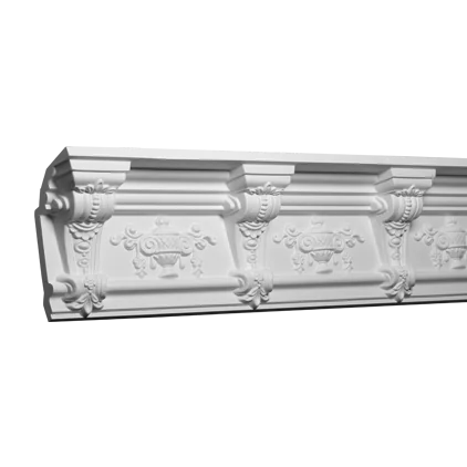 The polyurethane cornice with ornament 1.50.280 is a classic profile that provides a smooth transition between the wall and ceiling. Thanks to the unique properties of the material, it is lightweight, exceptionally water-resistant, and UV-resistant, ensuring durability and ease of installation.