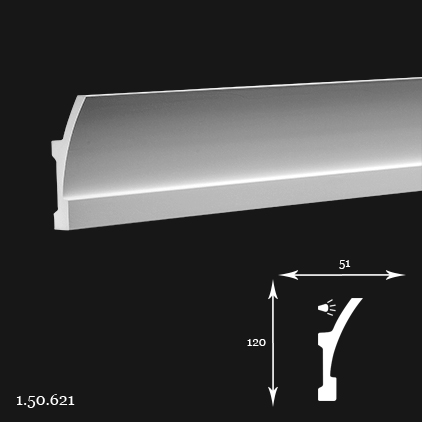 The polyurethane cornice 1.50.621 is a classic profile that provides a smooth transition between the wall and ceiling. Thanks to the unique properties of the material, it is lightweight, exceptionally water-resistant, and UV-resistant, ensuring durability and ease of installation.