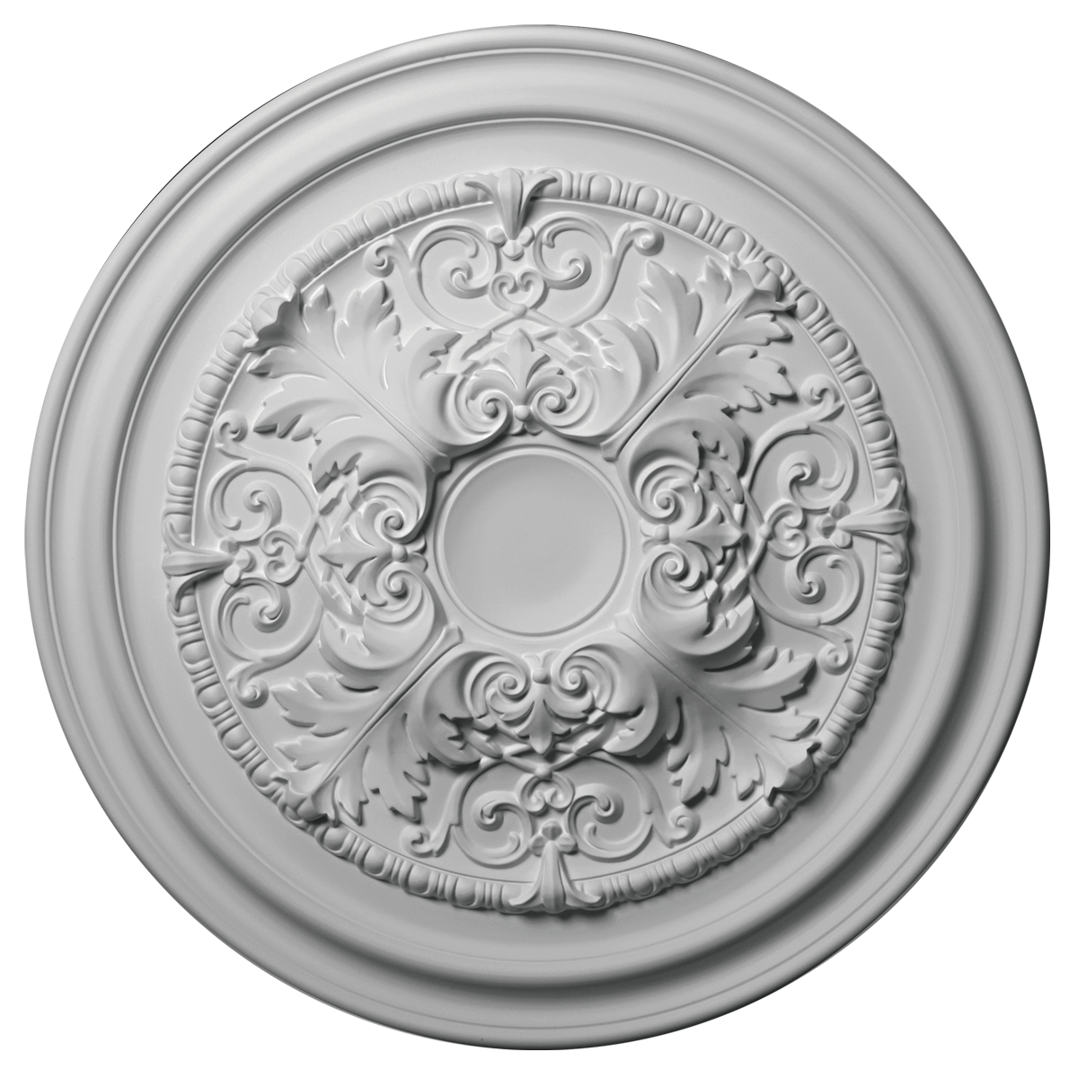 Polyurethane ceiling rosette 1.56.001. A ceiling decoration in classic style with an elegant embossed pattern. Thanks to the unique properties of the material, it is lightweight, exceptionally moisture-resistant, and UV-resistant, ensuring its durability and ease of installation.