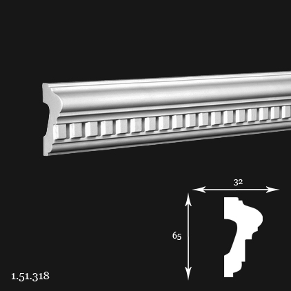 Polyurethane molding 1.51.318 — a classic profile that can be used for creating decorative frames, zoning rooms, framing doors, as well as decorating furniture while maintaining a unified interior style. Thanks to the unique properties of the material, it is lightweight, exceptionally moisture-resistant, and UV-resistant, ensuring its durability and ease of installation. Also available in an elastic FLEX version.