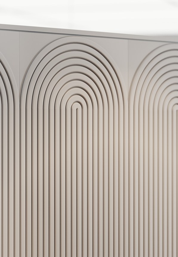 Wall panel CANELE L— a modern solution for creating accents in interior design. The shape of the slats gives the walls an elegant texture, while the expressive three-dimensional structure visually expands the space, adding depth and volume. Thanks to the unique properties of the material, it is lightweight, highly resistant to moisture, and UV-resistant, ensuring its durability and ease of installation.