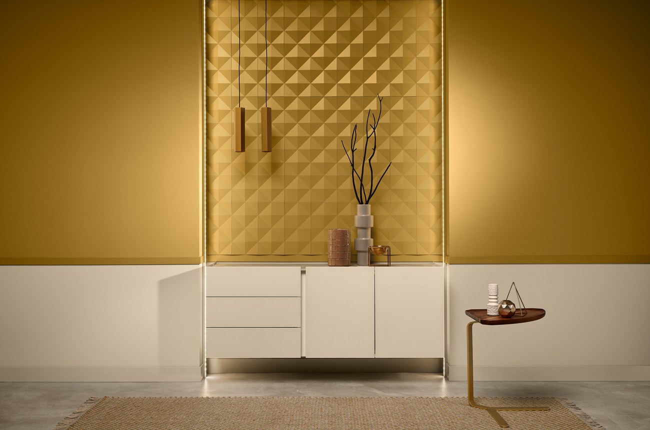 Wall panel PIRAMYD — a modern solution for creating accents in interior design. The shape of the slats gives the walls an elegant texture, while the expressive three-dimensional structure visually expands the space, adding depth and volume. Thanks to the unique properties of the material, it is lightweight, highly resistant to moisture, and UV-resistant, ensuring its durability and ease of installation.