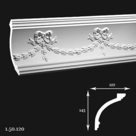 La cornisa de poliuretano con adorno 1.50.120 es un perfil clásico que garantiza una transición fluida entre la pared y el techo. Gracias a las propiedades únicas del material, es ligero, resistente a la humedad y a la radiación UV, lo que garantiza una larga vida útil y una fácil instalación.