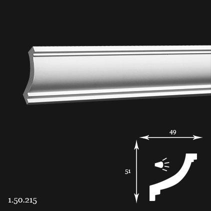 La cornisa de poliuretano 1.50.215 es un perfil clásico que garantiza una transición fluida entre la pared y el techo. Gracias a las propiedades únicas del material, es ligero, resistente a la humedad y a la radiación UV, lo que garantiza una larga vida útil y una fácil instalación.