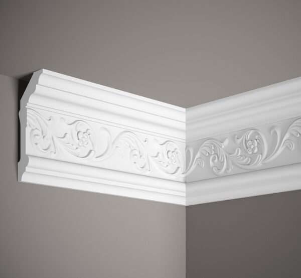 Cornisa de poliuretano MDA072: un perfil clásico con un adorno que garantiza una transición fluida entre la pared y el techo. Gracias a las propiedades únicas del material, es ligero, altamente resistente a la humedad y a los rayos UV, lo que garantiza su durabilidad y facilidad de instalación.