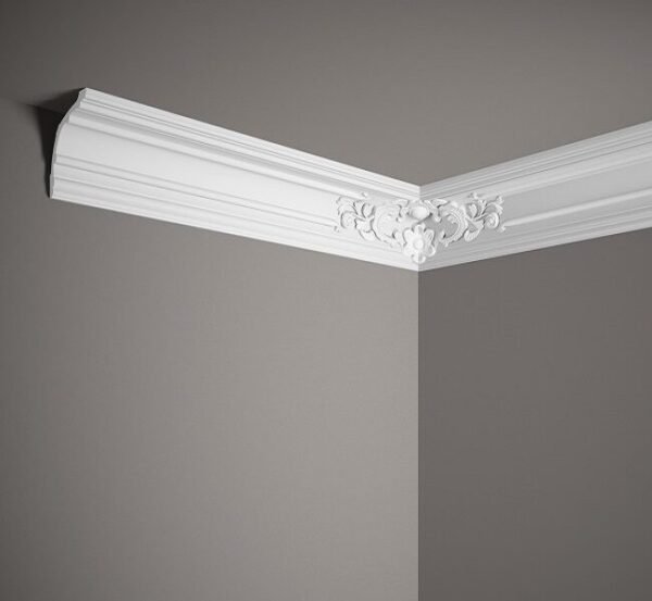 Cornisa de poliuretano MDA113: un perfil clásico con un adorno que garantiza una transición fluida entre la pared y el techo. Gracias a las propiedades únicas del material, es ligero, altamente resistente a la humedad y a los rayos UV, lo que garantiza su durabilidad y facilidad de instalación.