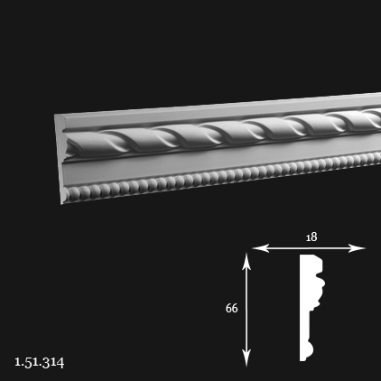 Moldura de poliuretano 1.51.314: un perfil clásico que permite crear marcos decorativos, zonificar estancias, cenefas de puertas y decorar muebles, manteniendo un estilo interior uniforme. Gracias a sus propiedades únicas, es ligero, resistente a la humedad y a los rayos UV, lo que garantiza su durabilidad y fácil instalación. También disponible en la versión flexible FLEX.