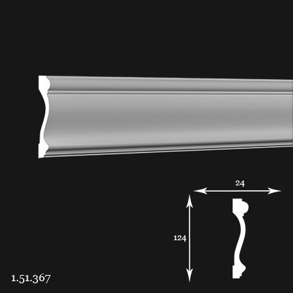 Moldura de poliuretano 1.51.367: un perfil clásico que permite crear marcos decorativos, zonificar espacios, bordes de puertas y decorar muebles, manteniendo un estilo interior uniforme. Gracias a sus propiedades únicas, es ligero, resistente a la humedad y a los rayos UV. También disponible en la versión flexible FLEX.