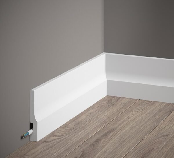 El rodapié QS009, fabricado con Polyforce, es un perfil moderno con una curva suave que aporta un toque sofisticado al interior. Gracias a las propiedades del material, el rodapié es ligero, resistente a la humedad y a la radiación UV, lo que garantiza su durabilidad y una fácil instalación.