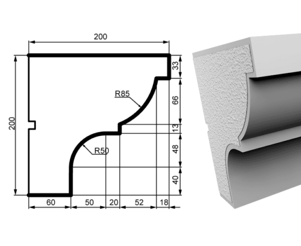 “Fasādes karnīzes KC121 ir izsmalcināts dekoratīvs elements, kas izgatavots no augstas kvalitātes polistirola un pārklāts ar izturīgu akrila masas un kvarca smilšu aizsargslāni. Šī palodze būs ideāla izvēle dekoratīva akcenta radīšanai, piešķirot jūsu mājoklim unikālu un stilīgu izskatu.