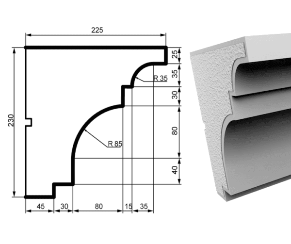 “Fasādes karnīzes KC127 ir izsmalcināts dekoratīvs elements, kas izgatavots no augstas kvalitātes polistirola un pārklāts ar izturīgu akrila masas un kvarca smilšu aizsargslāni. Šī palodze būs ideāla izvēle dekoratīva akcenta radīšanai, piešķirot jūsu mājoklim unikālu un stilīgu izskatu.