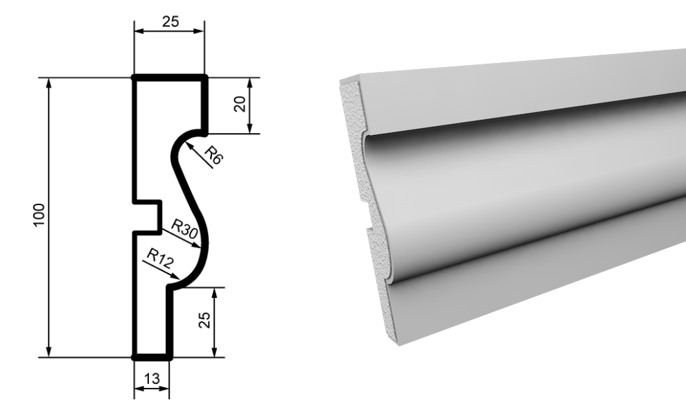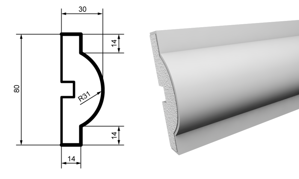 Interjera un fasādes dekoratīvie elementi no poliuretāna un ekstrudētā polistirola.