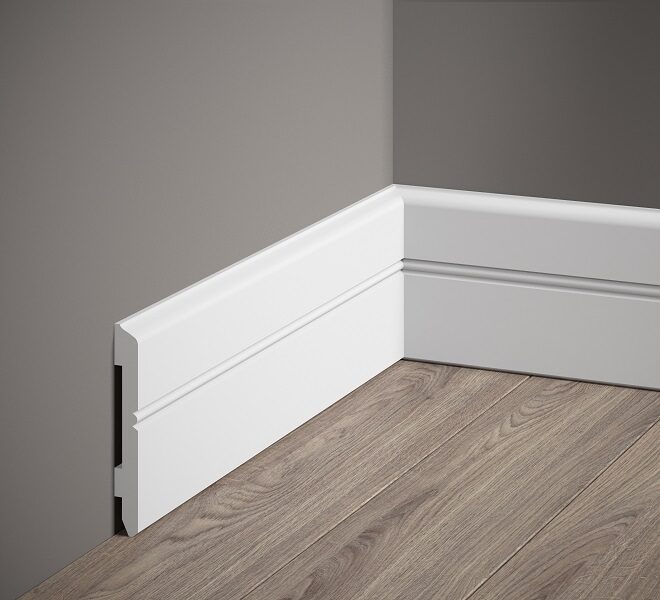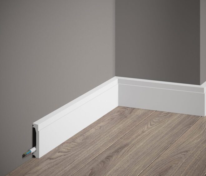 MD006 grīdlīstes profils no Polyforce materiāla ir mūsdienīgs profils ar skaidrām taisnām līnijām un stingriem leņķiem, kas piešķir interjeram izsmalcinātu akcentu. Gludās līnijas izceļ telpas stilu, nepārslogojot to. Pateicoties materiāla īpašībām, grīdlīstei ir mazs svars, izcila mitrumizturība un noturība pret UV starojumu, kas nodrošina tās ilgmūžību un vieglu uzstādīšanu.
