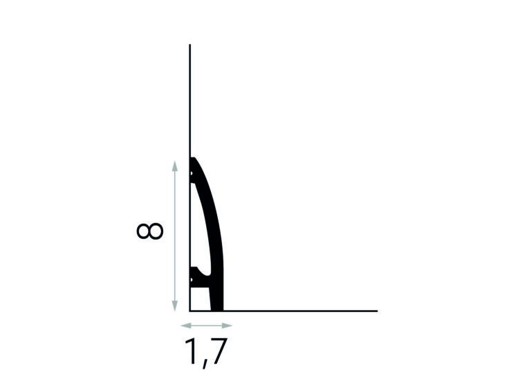 MD030 grīdlīstes profils no Polyforce materiāla ir mūsdienīgs profils ar gludu līkni, kas piešķir interjeram izsmalcinātu akcentu. Pateicoties materiāla īpašībām, grīdlīstei ir mazs svars, izcila mitrumizturība un noturība pret UV starojumu, kas nodrošina tās ilgmūžību un vieglu uzstādīšanu.