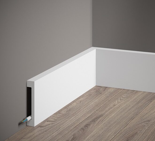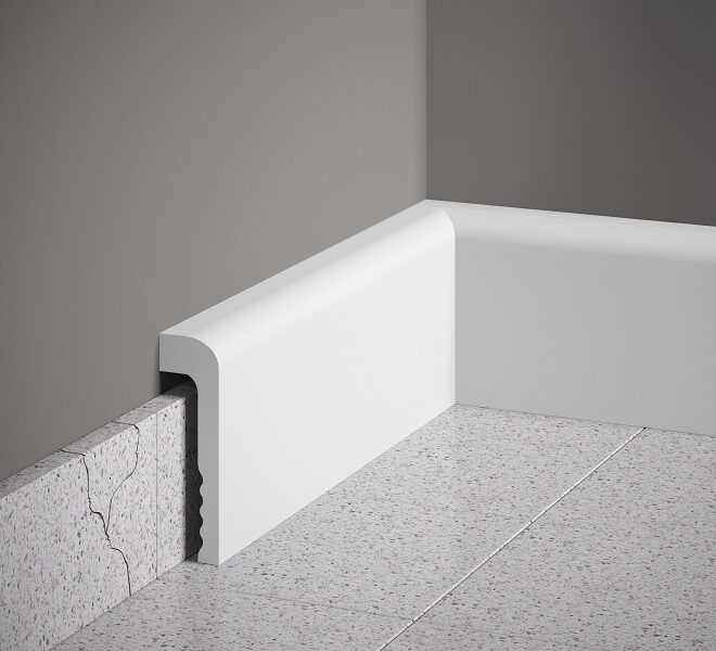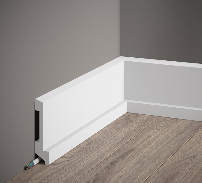 MD358 grīdlīstes profils no Polyforce materiāla ir elegants, augsts profils ar klasisku dizainu, kas piešķir interjeram izsmalcinātību un rafinētību. Smalkās līnijas un maigi līkumi harmoniski izceļ telpas stilu. Pateicoties materiāla īpašībām, grīdlīstei ir mazs svars, izcila mitrumizturība un noturība pret UV starojumu, kas nodrošina tās ilgmūžību un vieglu uzstādīšanu.