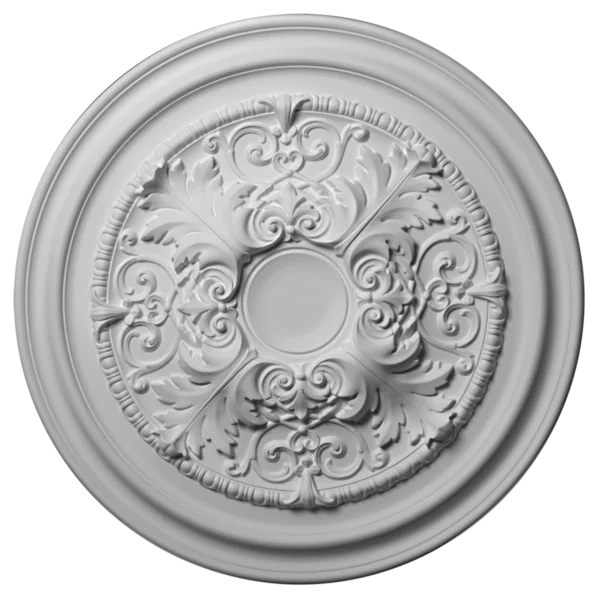 Poliuretāna griestu rozete 1.56.001. Griestu dekors klasiskā stilā ar elegantu reljefu rakstu. Pateicoties materiāla unikālajām īpašībām, tas ir viegls, ar mitrumizturību un UV izturību, kas nodrošina tā ilgmūžību un vieglu uzstādīšanu.