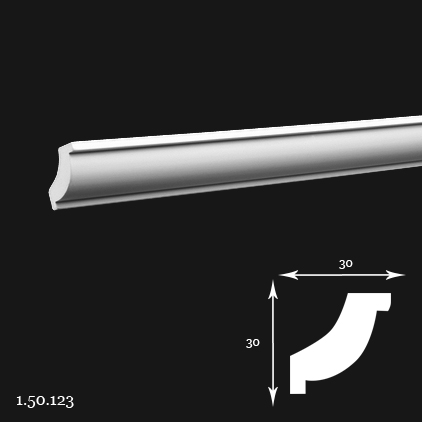 Poliuretāna karnīze 1.50.123 ir klasisks profils, kas nodrošina vienmērīgu pāreju starp sienu un griestiem. Pateicoties unikālajām materiāla īpašībām, tā ir viegla, mitrumizturīga un izturīga pret UV starojumu, nodrošinot ilgmūžību un vieglu uzstādīšanu.