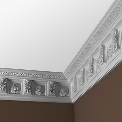 Poliuretāna karnīze ar ornamentu 1.50.281 ir klasisks profils, kas nodrošina vienmērīgu pāreju starp sienu un griestiem. Pateicoties unikālajām materiāla īpašībām, tā ir viegla, mitrumizturīga un izturīga pret UV starojumu, nodrošinot ilgmūžību un vieglu uzstādīšanu.