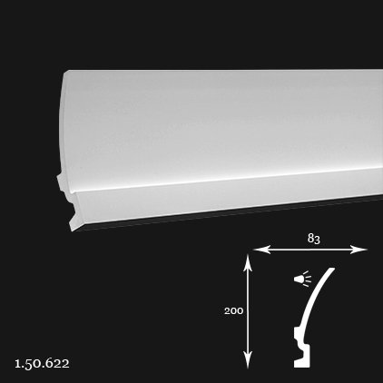 Poliuretāna karnīze 1.50.622 ir klasisks profils, kas nodrošina vienmērīgu pāreju starp sienu un griestiem. Pateicoties unikālajām materiāla īpašībām, tā ir viegla, izcili mitrumizturīga un izturīga pret UV starojumu, nodrošinot ilgmūžību un vieglu uzstādīšanu.
