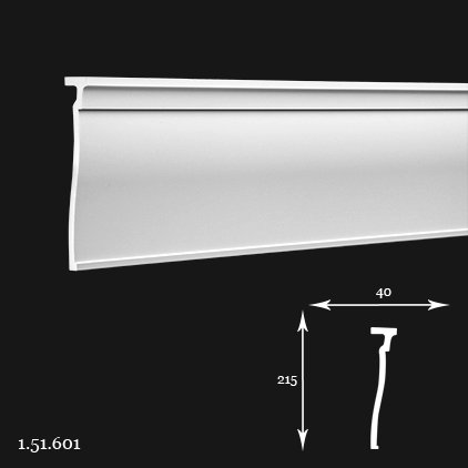 Poliuretāna moldings 1.51.601 — klasiskā profila elements, ko var izmantot dekoratīvo rāmju izveidei, telpu zonēšanai, durvju apmalēšanai, kā arī mēbeļu dekorēšanai, saglabājot vienotu interjera stilu. Pateicoties materiāla unikālajām īpašībām, tas ir viegls, mitrumizturīgs un UV izturīgs. Pieejams arī elastīgā FLEX versijā.