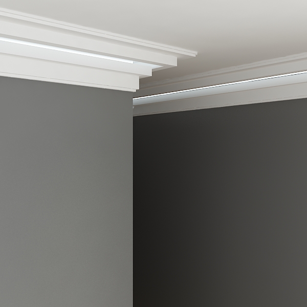 Карниз для скрытой LED подсветки KF705 из материала Polyforce — это современное решение для интерьера. Благодаря свойствам материала, карниз обладает легким весом, исключительной влагостойкостью и устойчивостью к ультрафиолетовому излучению, что обеспечивает его долговечность и легкость монтажа.