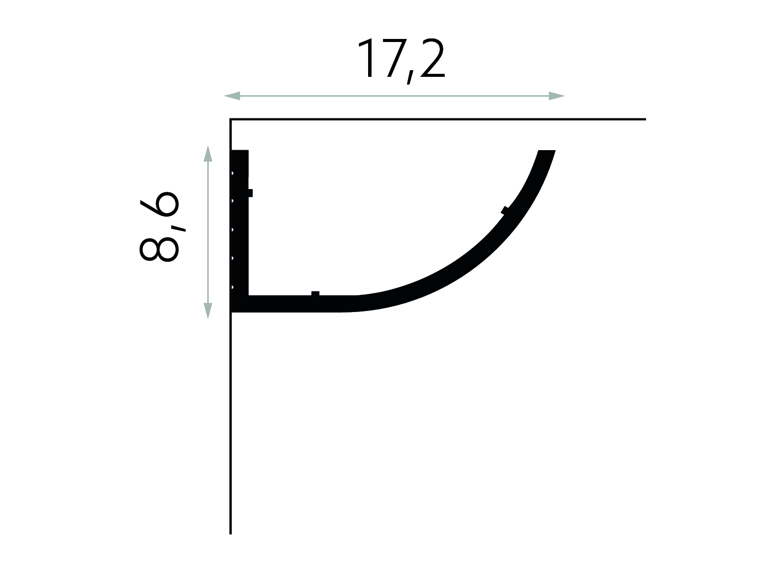 Карниз для скрытой LED подсветки MD362 из материала Polyforce — это современное решение для интерьера. Благодаря свойствам материала, карниз обладает легким весом, исключительной влагостойкостью и устойчивостью к ультрафиолетовому излучению, что обеспечивает его долговечность и легкость монтажа.