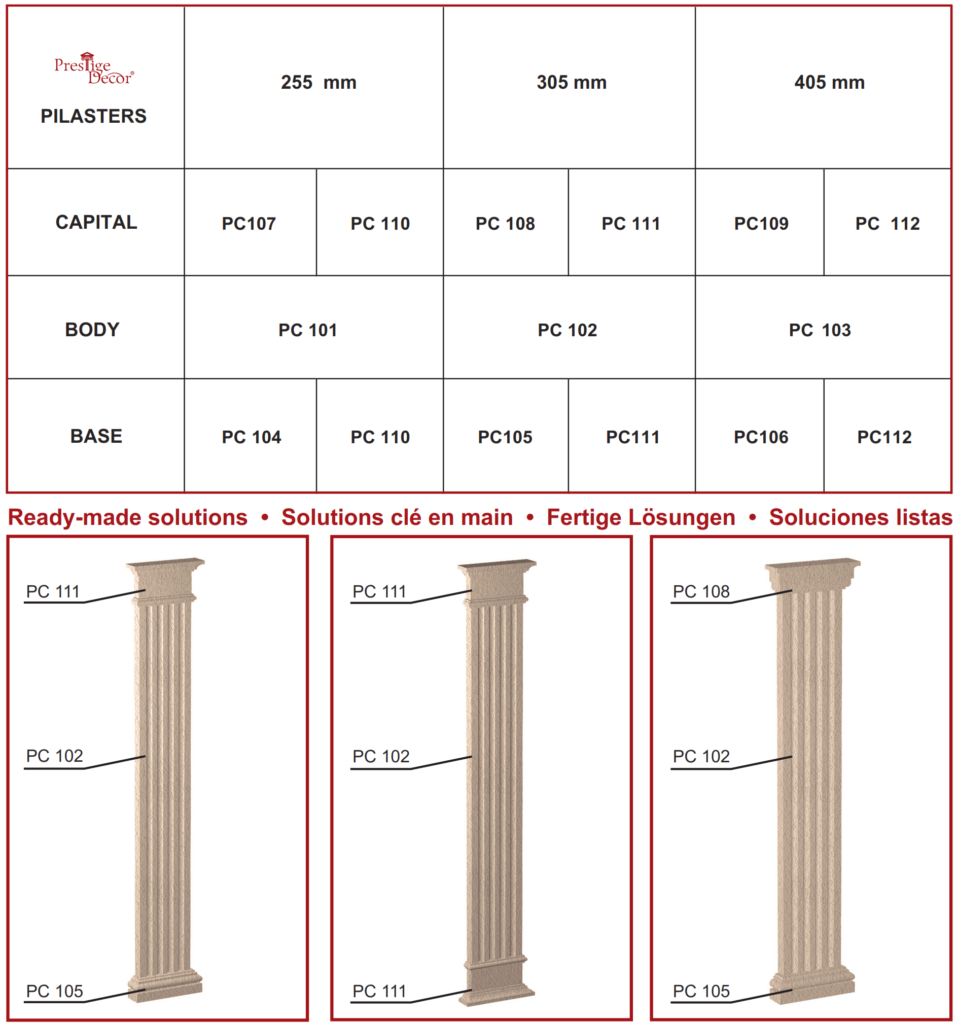 «Фасадные пилястры PC101 – это изысканный элемент декора, изготовленный из высококачественного пенополистирола и покрытый прочным акриловым слоем с добавлением мраморной крошки.
