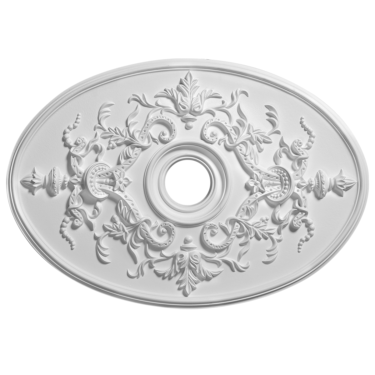 Полиуретановая потолочная розетка 1.56.041. Потолочный декор в классическом стиле с элегантным рельефным узором и центральным отверстием. Благодоря уникальным свойствам материала, он имеет легкий вес, исключительную влагостойкость и устойчивость к ультрафиолету, что гарантирует его долговечность и легкость монтажа.