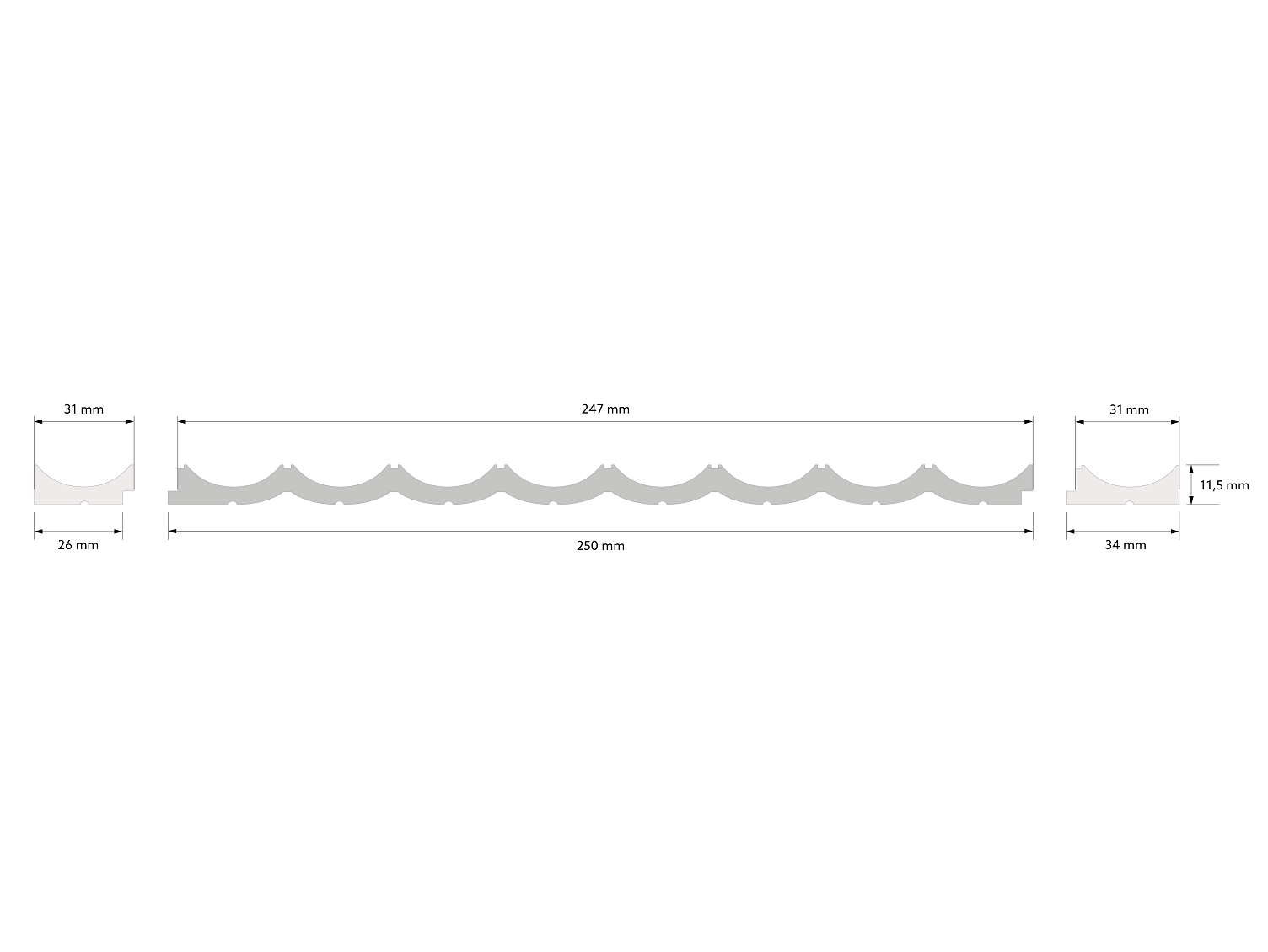 Стеновая панель WP002 из материала Polyforce — современное решение для создания акцентов и в интерьере. Вогнутая полукруглая форма реек придаёт стенам изысканную текстуру, а выразительная трёхмерная структура визуально расширяет пространство, добавляя глубину и объём . Благодаря уникальным свойствам материала, он имеет легкий вес, исключительную влагостойкость и устойчивость к ультрафиолету, что гарантирует его долговечность и легкость монтажа.