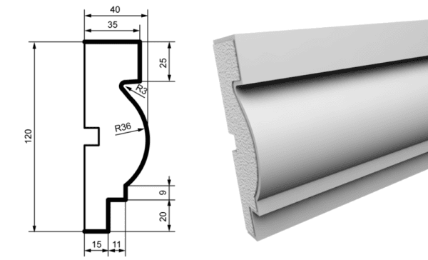 «Фасадный молдинг MC115 – это изысканный элемент декора, изготовленный из высококачественного пенополистирола и покрытый прочным акриловым слоем с добавлением мраморной крошки. Этот подоконник станет идеальным выбором для создания декоративного акцента, придающего вашему дому уникальный и стиль.
