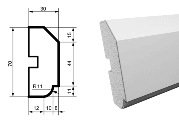 «Фасадный молдинг MC148 – это изысканный элемент декора, изготовленный из высококачественного пенополистирола и покрытый прочным акриловым слоем с добавлением мраморной крошки. Этот подоконник станет идеальным выбором для создания декоративного акцента, придающего вашему дому уникальный и стиль.